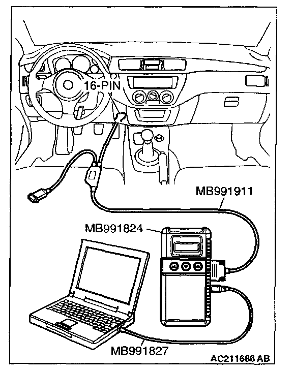 3. Connect special tool MB991827 to special tool MB991824 and the personal computer.