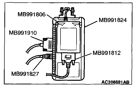 CAUTION: To prevent damage to scan tool MB991958, always turn the ignition switch to the "LOCK" (OFF) position before connecting or disconnecting scan tool MB991958. Connect the special tool MB991911 before connecting special tool MB991812. Be sure to connect special tool MB991806 after turning on special tool MB991924.