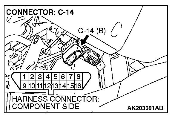 STEP 1. Measure the power supply voltage at data link connector C-14.