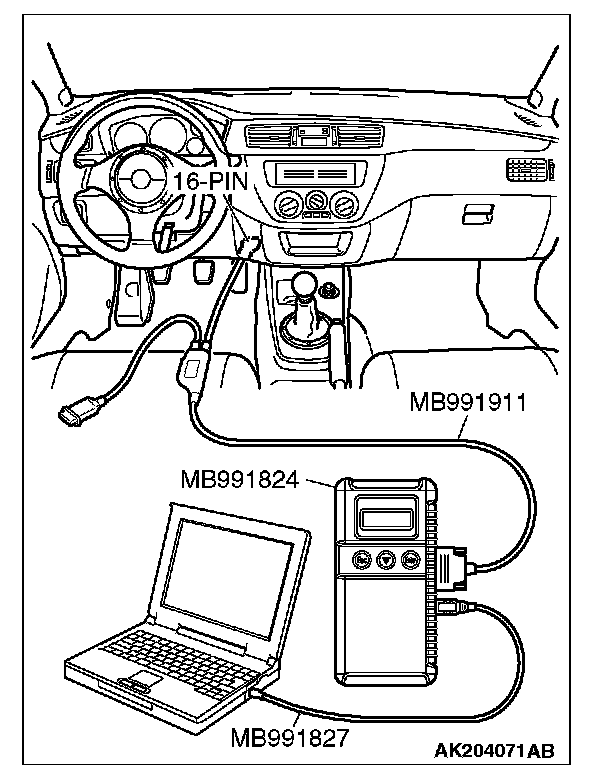 1. Connect scan tool MB991958 to the data link connector.