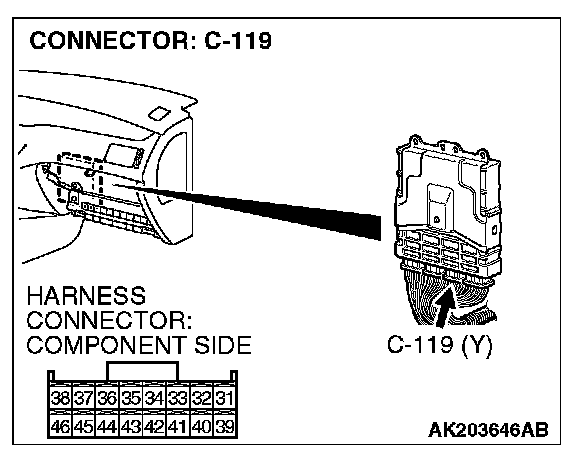 1. Disconnect the connector C-119 and measure at the harness side.