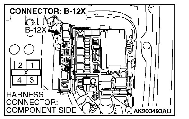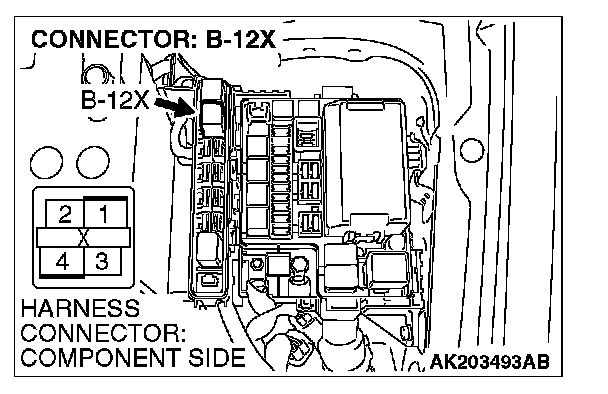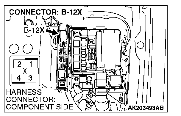1. Disconnect the connector B-12X and measure at the harness side.