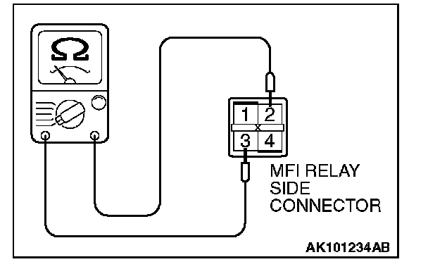 2. Check for continuity between the MFI relay terminals No. 2 and No. 3.