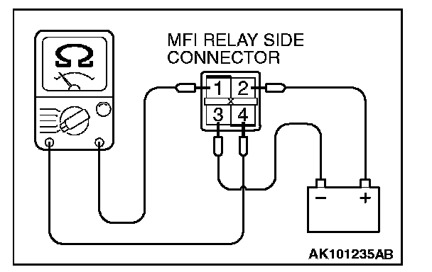 - Battery positive voltage is applied to the MFI relay (terminals No. 1, No. 2).