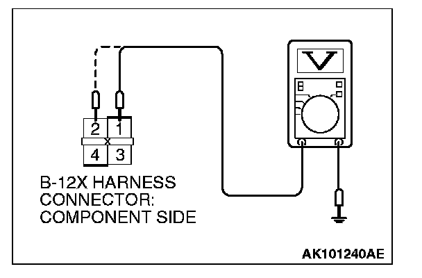STEP 3. Measure the power supply voltage at MFI relay harness side connector B-12X.