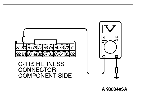 STEP 6. Measure the backup power supply voltage at ECM harness side connector C-115.