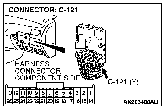 1. Disconnect the connector C-121 and measure at the harness side.