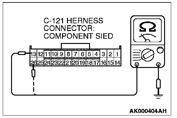 2. Check for the continuity between terminals (No. 13, No. 26) and ground.