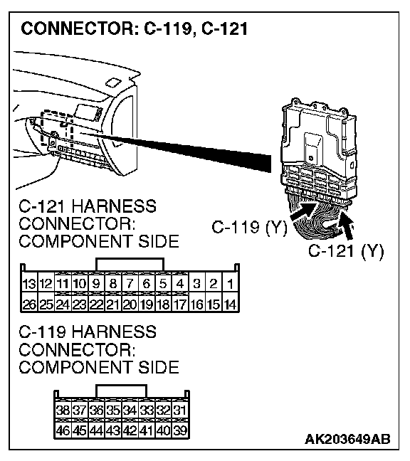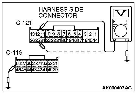 STEP 9. Measure the power supply voltage at ECM harness side connector C-121, C-119.