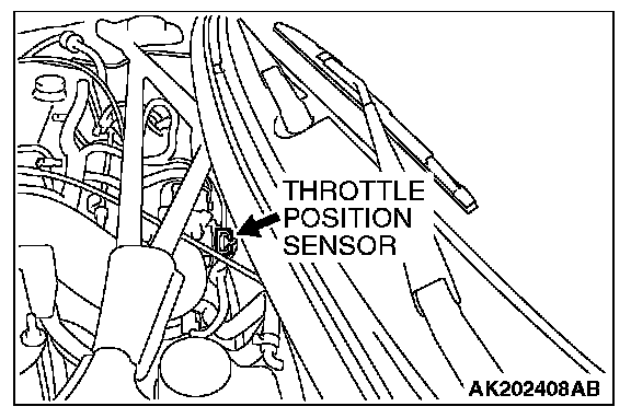 1. Disconnect the throttle position sensor connector, and connect the special tool MB991348 in between. (All terminals should be connected.)