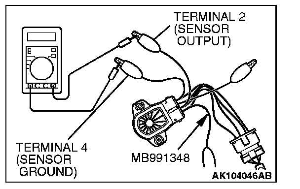 2. Connect a digital voltmeter between throttle position sensor terminal No. 2 (sensor output) and terminal No. 4 (sensor ground).
