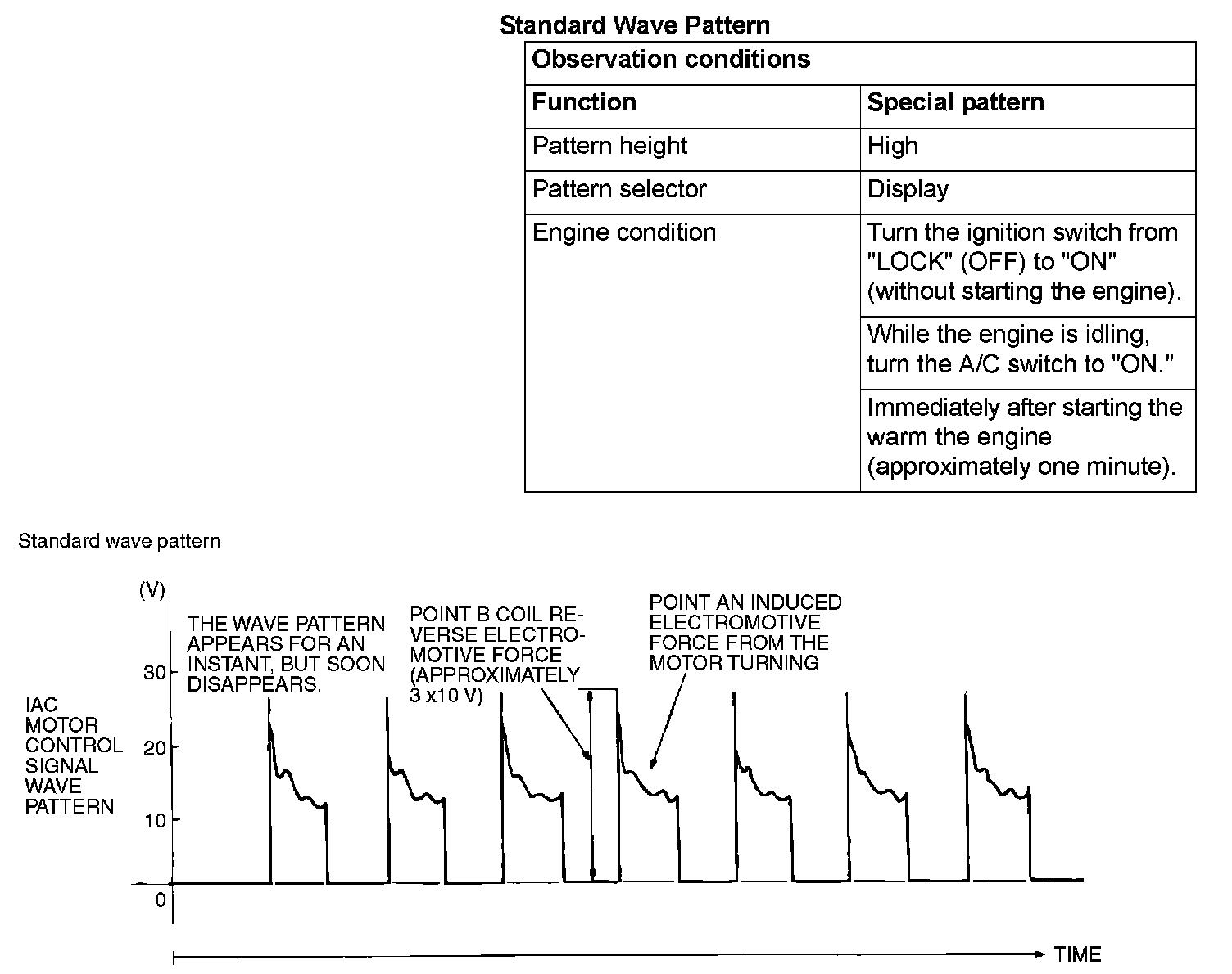 Check that the standard wave pattern appears when the idle air control motor is operating.