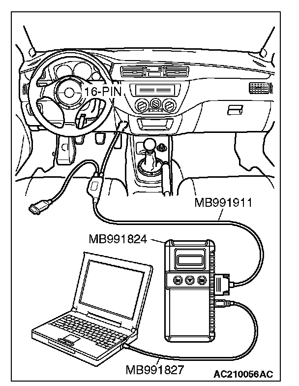 3. Connect special tool MB991827 to special tool MB991824 and the personal computer.