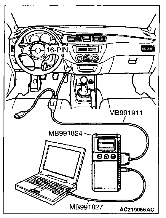 3. Connect scan tool MB991502 or MB991958 to the data link connector.