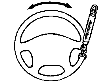 3. Attach a spring scale to the outer circumference of the steering wheel and measure the steering force required to turn the steering wheel from the straight ahead position to the left and right (within a range of 1.5 turns). Also check to be sure that there is no significant change in the required steering effort.