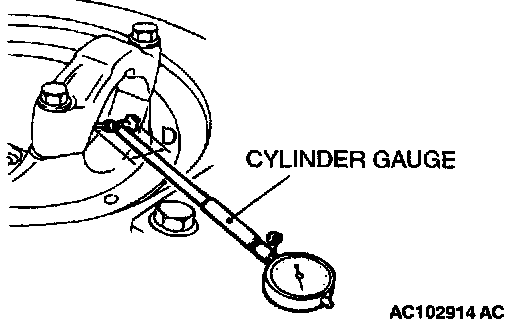 9. Install the bearing cap, and then use a cylinder gauge to measure the inside diameter (D) of the bearing cap.