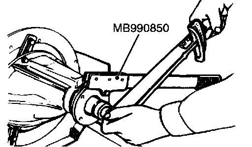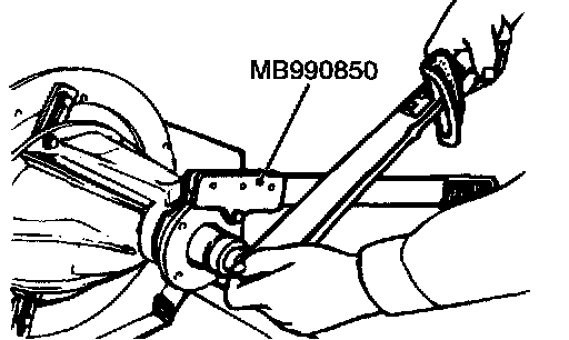 2. Tighten the companion flange self-locking nut to the specified torque while holding the companion flange with special tool MB990850.