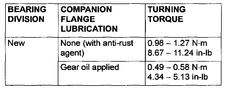 8. If the turning torque is not within the standard value, check the tightening torque of the companion flange self-locking nut, and the installation of the oil seal.
