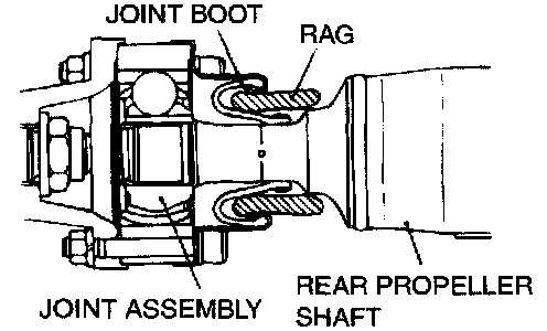 2. Insert a rag so as to avoid boot damage, and remove the propeller shaft assembly in a straight and level manner