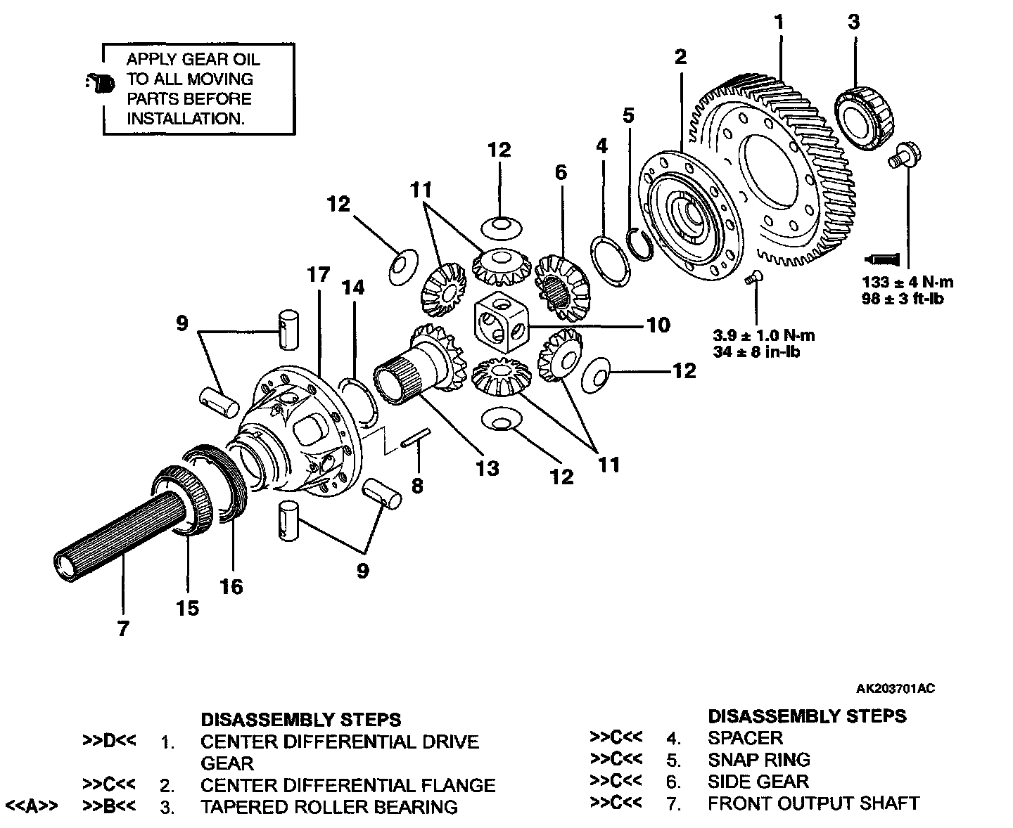 CENTER DIFFERENTIAL OVERHAUL W/ RELATED COMPONENTS
