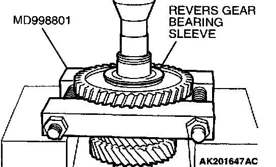 1. Using special tool MD998801, support the reverse gear, and then set them on the press.