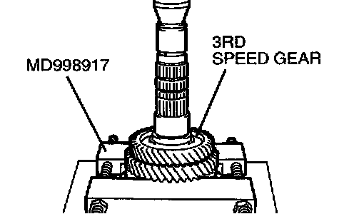 1. Using special tool MD998917, support the 1st speed gear, and then set them on the press.