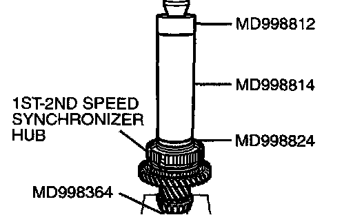3. Using special tools MD998812, MD998814, MD998824 and MD998364, press install the 1st-2nd speed synchronizer hub with the press.