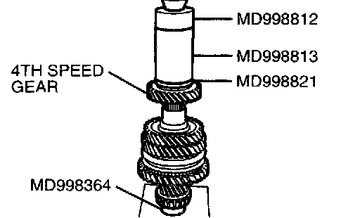 2. Using special tools MD998812, MD998813, MD998821 and MD998364, press install the 4th speed gear onto the output shaft.