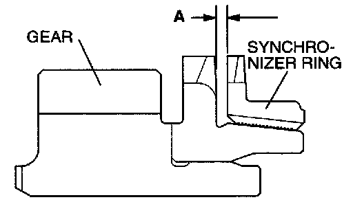 3. Force the synchronizer ring toward the clutch gear and check clearance "A". If "A" is less than the limit, replace the synchronizer ring.