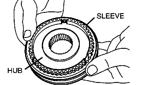 1. Combine the synchronizer sleeve and hub, and check that they slide smoothly.