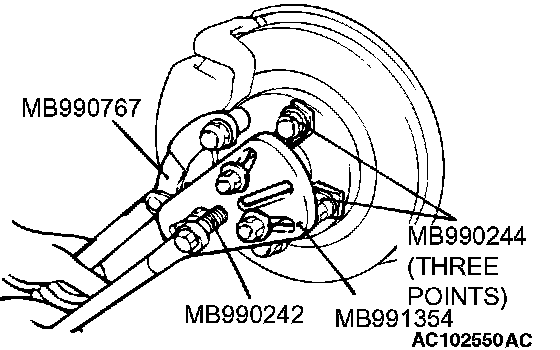 1. Use special tools MB990241 (MB990242 and MB990244), MB991354 and MB990767 to push out the drive shaft or the drive shaft and inner shaft assembly from the hub.