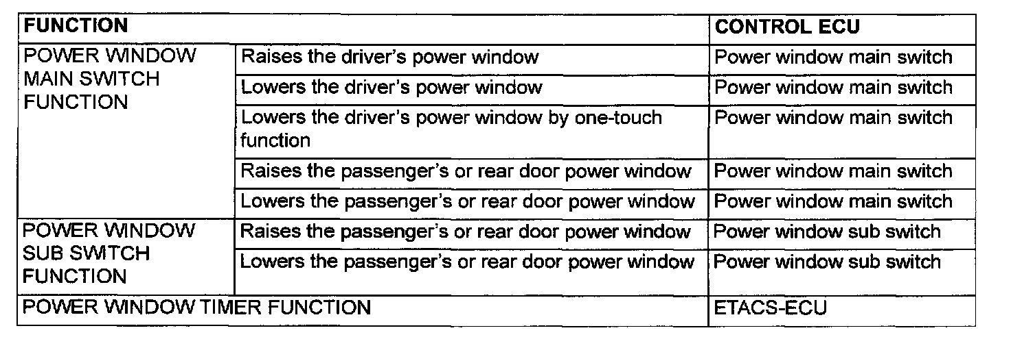 - The power window main switch contains a one-touch down switch that will automatically open the driver's window only.
