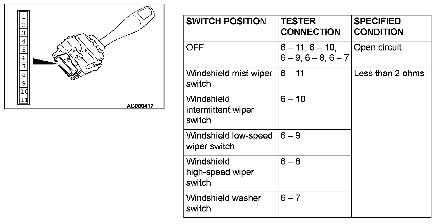Windshield Wiper and Windshield Washer Switch Check