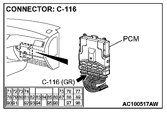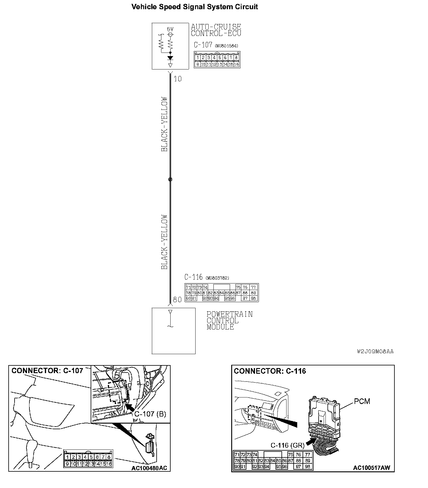 STEP 2. Check the harness wire between auto-cruise control-ECU connector C-107 terminal 10 and PCM connector C-116 terminal 80 for damage.