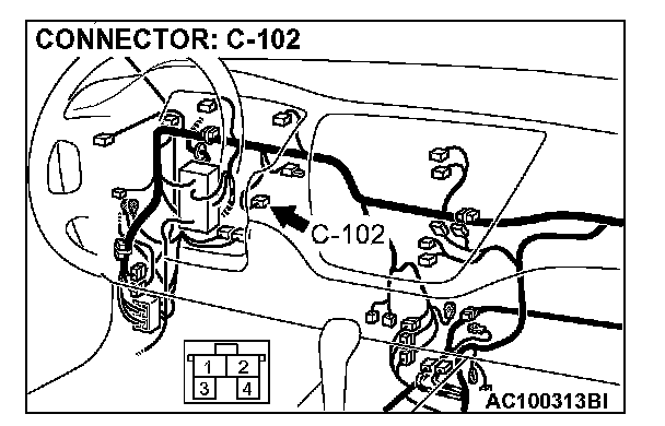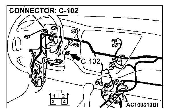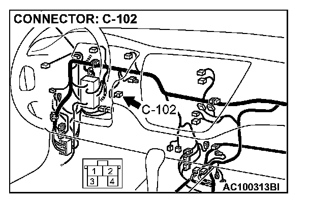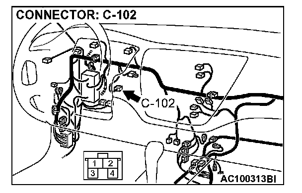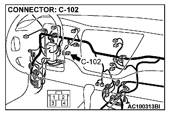 STEP 2. Check stoplight switch connector C-102 for loose, corroded or damaged terminals, or terminals pushed back in the connector.