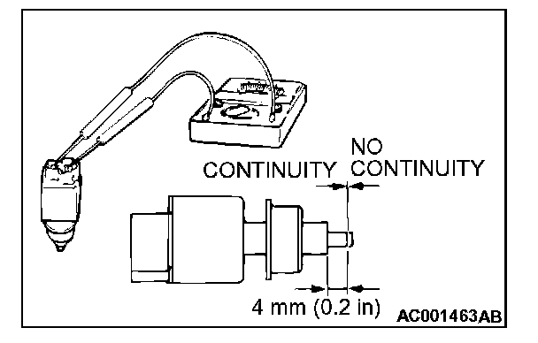 3. The stoplight switch is in good condition if the circuit is open when the plunger is pushed in to a depth of within 4 mm (0.2 inch) from the outer case edge surface, and if there is continuity when it is released.