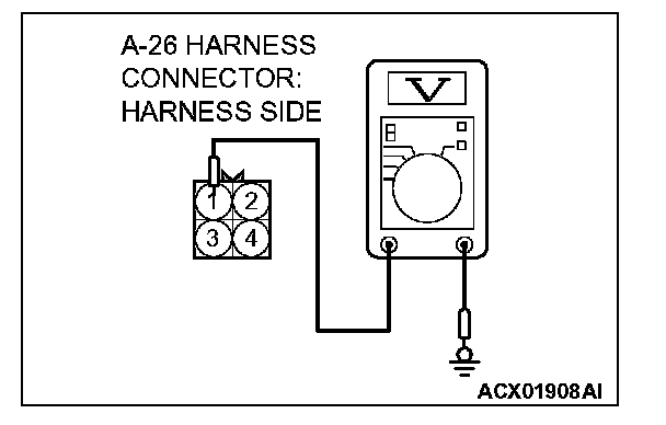 3. Measure the voltage between auto-cruise control vacuum pump connector A-26 terminal 1 and ground by backprobing.