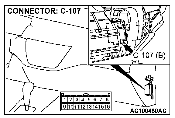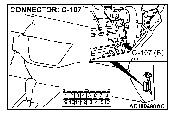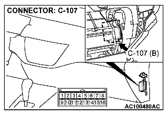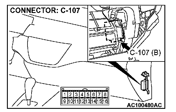 STEP 17. Check auto-cruise control-ECU connector C-107 for loose, corroded or damaged terminals, or terminals pushed back in the connector.