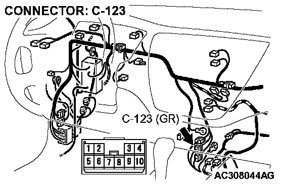 STEP 3. Check transmission range switch connector B-16, intermediate connector C-123 and junction block connector C-210 for loose, corroded or damaged terminals, or terminals pushed back in the connector.