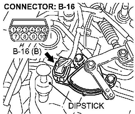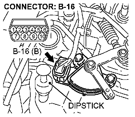 STEP 7. Check transmission range switch connector B-16 for loose, corroded or damaged terminals, or terminals pushed back in the connector.