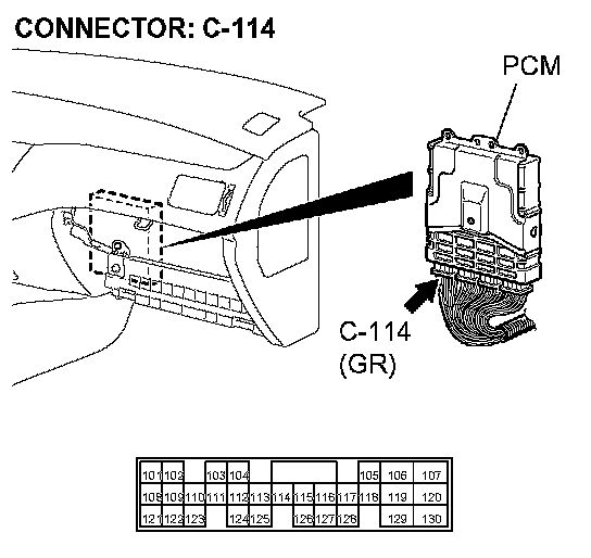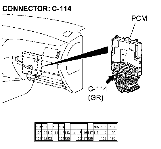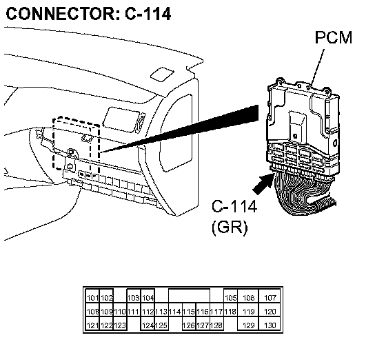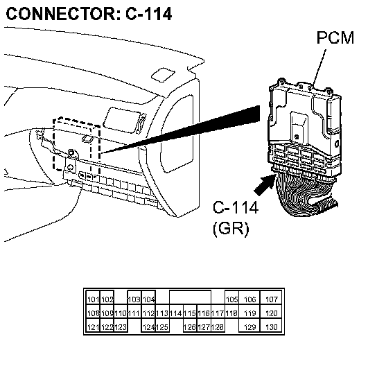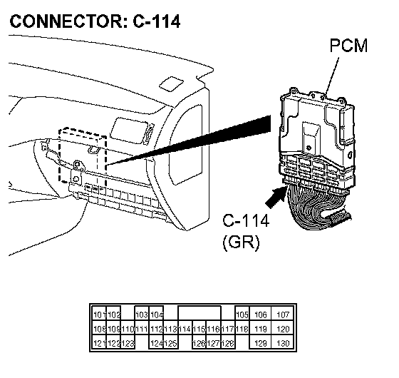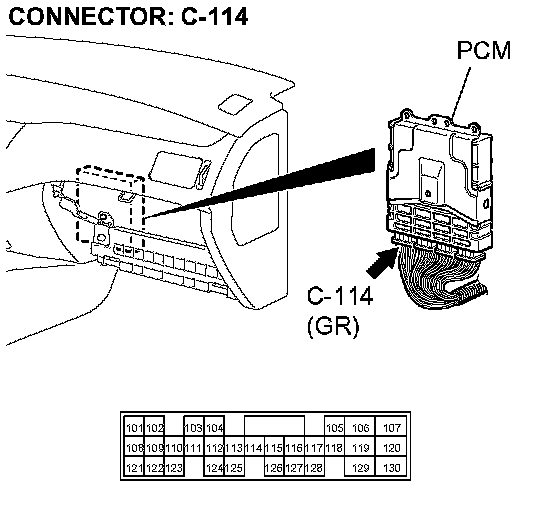 STEP 25. Check PCM connector C-114 for loose, corroded or damaged terminals, or terminals pushed back in the connector.