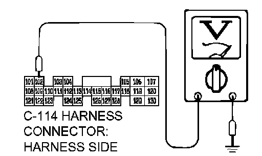 STEP 34. Measure the transmission range switch output voltage at PCM connector C-114 by backprobing.