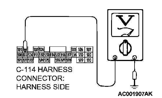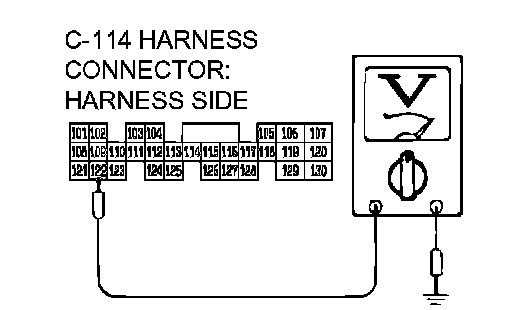 STEP 24. Measure the transmission range switch output voltage at PCM connector C-114 by backprobing.