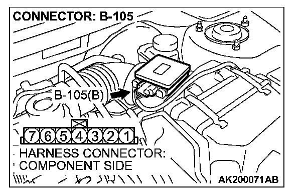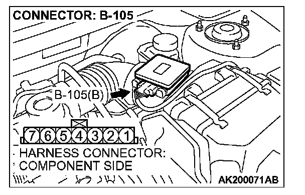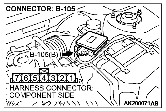 STEP 3. Check harness connector B-105 at the intake air temperature sensor for damage.
