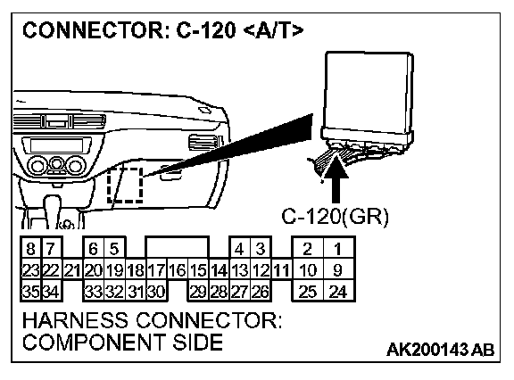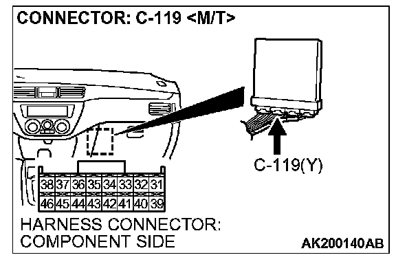 STEP 6. Check for open circuit and harness damage between intake air temperature sensor connector B-105 and ECM connector C-119