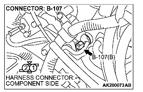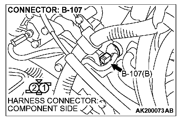 STEP 3. Check harness connector B-107 at the engine coolant temperature sensor for damage.