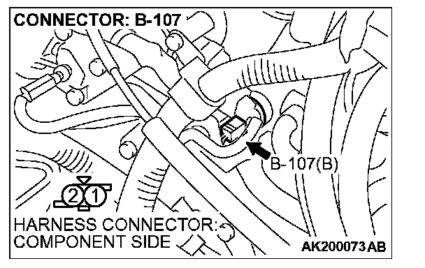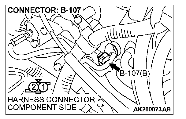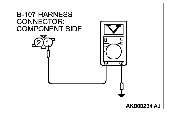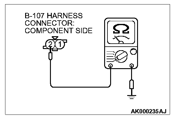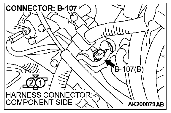 1. Disconnect connector B-107 and measure at the harness side.