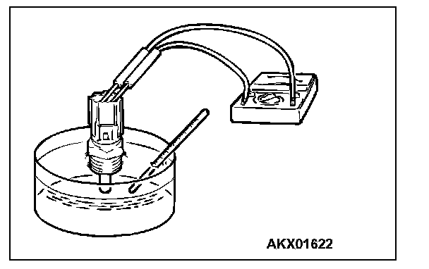 3. With the temperature sensing portion of engine coolant temperature sensor immersed in hot water, check resistance.