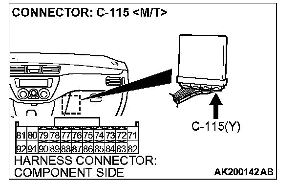 STEP 3. Check harness connector B-113 at heated oxygen sensor (front) and harness connector C-115 at ECM