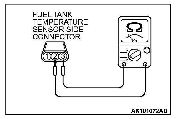2. Measure the resistance between terminal No. 2 and No. 3 of the fuel tank temperature sensor.